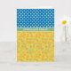 A chic Birthday card, with the greeting in Welsh and a mix'n'match pattern of Blue and White Polka Dots and a a pattern of Daffodils, from a watercolour painting by Judy Adamson.