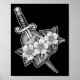 Dagger Through Heart X Flowers Blackwork Tattoo Fl Poster