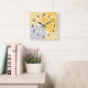 Dahlia Bouquet, mustard yellow gray floral Square Wall Clock