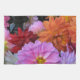 Brighten the day with these glorious American MoJo kitchen towels featuring a collection of waterlily dahlia blossoms in a colorful abstract pattern of pink, yellow, orange, red, white and mauve.