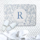 Dainty Blue & White Floral Monogram Personalized Bath Mat
