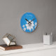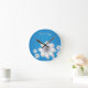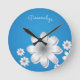 Add some beauty & elegance to your wall art with a round wall clock. Personalize with name, initials, message, quote or anything you desire. Or remove the Personalization as an option. Dainty & Chic White Flowers on Blue Background.