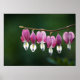 A photograph of an Old Fashion Bleeding Heart branch, with pink dainty heart shaped flowers.
