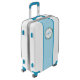 This beautiful luggage will be loved by any of the girls in the house, whether it be Moms, teen girls or young girls. It features a sky blue background lined in dark turquoise blue. A beautiful floral wreath with tiny delicate blue flowers graces the upper part and you personalize it with your name and initial. Luggage is shown in white, but it's also truly stunning in black!