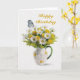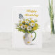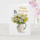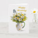 A delightful painting of a pitcher of daisies and butterfly. This card is completely customizable. Change the words Happy Birthday to read anything you like. A perfect card for your wife or daughter. Makes a beautiful get well card too.