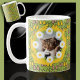 Daisies and Cat Ears on a Green Coffee Cat Coffee Mug