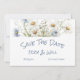 Our stunning Save-The-Date card features a background of watercolor wildflowers. Delicately illustrated daisies and flowers the hue of faded denim blue set the perfect tone for your romantic celebration. Each card is a work of art, reflecting the beauty of nature and the unique charm of your love story. Ideal for outdoor weddings, garden ceremonies, or vintage-inspired events, our save the date card is certain to enchant your guests from the moment they receive them. Personalize every detail to make it uniquely yours, and let the timeless beauty of watercolor daisies and wildflowers, with hints of faded denim and a suggestion of nostalgic Western influence, announce your special day. Order now and set the stage for a wedding to remember.