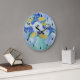 This wall clock features a painting by Brendan Loughlin, an artist from Guilford, Connecticut. Beautiful yellow and white daisies with blue irises.