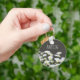 Modern, stylish personalised keychain with sunny daisies on dark grey background.
