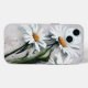 Contemporary painted white daisy flowers on a gray grungy textured background