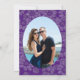 Daisies Purple Save the Date Photo Card with an oval cutout and daisy translucent pattern. Personalize this template with your information and the couple's photo. You can customize the color and font when you click on Edit.