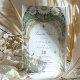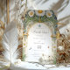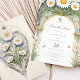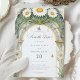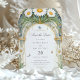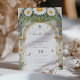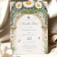 Announce your special day with this stunning Save the Date invitation featuring a beautiful Art Nouveau-inspired design. The front of the card showcases a captivating arrangement of white daisies framed by intricate golden accents and lush green foliage, creating a sense of timeless elegance and natural beauty. A charming touch of butterflies and a delicate bluebird add to the romantic atmosphere. The back of the card continues the elegant theme with a detailed floral motif, making it a perfect keepsake for your guests. The soft color palette of white, green, blue, and gold provides a sophisticated and serene preview of your upcoming wedding.