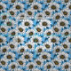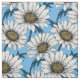 Daisies, wild flowers on blue fabric