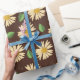 The brown background provides a subtle and earthy backdrop, complementing the vibrant daisies while adding a sense of warmth and sophistication. This wrapping paper is perfect for adding a natural and inviting touch to any gift, making it ideal for various occasions such as birthdays, anniversaries, or even a simple gesture of appreciation.