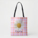 Daisy and Custom Name on Pink Plaid Pattern Tote B Bag