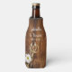 Personalize the charming White Daisy and Horse Bit Country Western Wedding Bottle Cooler to create one of a kind party favors for your casual yet classy ranch style bridal shower barn party or marriage reception. This rustic chic custom equestrian theme wedding bottle cooler features a quaint floral photograph of a white daisy flower blossom, pearl necklace and horse bit with a brown barn wood background.
