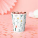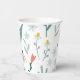 Whimsical print paper cups with white daisies and pink tulips.