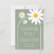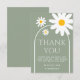 This charming baby shower thank-you card features hand-drawn daisies on a sage green arch background, paired with stylish typography. Perfect for a baby shower of either a boy or girl. Original Drawing © Michele Davies.