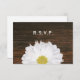 A wedding RSVP featuring an image of a daisy peeking from bottom over a background of dark brown barnwood. Personalize the text with details of your occasion.