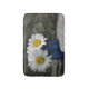 This bath mat features several daisies arranged in an old cobalt ink bottle sitting in a rock garden