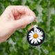 The classic white daisy on a black key chain.
