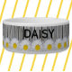 Daisy Floral Border on Rustic Old Weathered Wood Fence Personalized Dog's Feeding and Water Bowl features a row of yellow and white daisies along a rustic-looking, weathered old wood fence that's turned gray from being out in the weather. Above the border is the dog's name. We used the name Daisy, but you can change it for your dog's name and add any text or images you like.