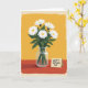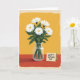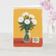 Designed with a bouquet of classic white daisies as the main focus, the illustration shows crisp petals circling sunny yellow centers in a clear glass vase. Green stems and leaves lean together inside the vase, and the visible submerged stems add a quiet, intimate realism, like a small gift set down for someone special ❤️. The arrangement sits on a warm russet surface that grounds the scene and makes the whites and greens stand out. Behind it, a mellow yellow background spreads gentle warmth across the whole image, softened by diffused light and mild shadows on the petals and glossy glass. To the right, a small cream-colored note card adds a friendly, close-to-the-heart touch, as if it’s waiting to be picked up and read 🌼. The message is placed in the center of that small card in dark lettering, standing out clearly against the pale paper. The note card has softly uneven, brushy edges and sits slightly angled beside the vase.