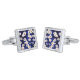 This set of floral cufflinks features my original photograph of a garden of daisy flowers, processed in an illustrated artsy style in blue. They are a little over ½ inch in size and have a generous length to fit most any shirt cuff. These have a silver finish and are square in shape, however you may change the finish and shape as desired. A great gift for dad, Father’s Day or graduation, groomsmen, groom gift for a wedding or someone that got a promotion.