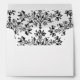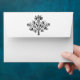 Elegant envelopes with script text for your return address labels on the front, and an elegant vintage floral etching medallion on the back flap, lined with a pattern of damask daisies inside.