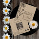 Daisy Floral Outline Minimalist Kraft Paper Handmade | Handcrafted Business Card -- Features a daisy outline line art motif on the front left side, along with your business name and website address. On back is a customizable QR Code along with your other business details. The bottom right features a variety of social media icons--you can use these for this purpose, swap them for icons of your choosing or delete them altogether. All colors, text and backgrounds are editable.