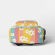 Daisy Flower Stripe Pattern Logo Corporate Printed Backpack features a striped pattern in yellow, peach, pink and blue with cute daisy flowers with your custom business logo. Perfect for corporate gifts, school, sports, gym, travel and more. Designed by ©2025 Evco Studio www.zazzle.com/store/evcostudio