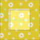 Pretty yellow fabric printed with delicate white Daisy flowers, linked together by a dainty swirly line. Just like a Daisy chain.