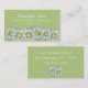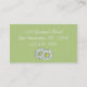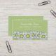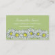 Fresh and pretty business cards featuring white Shasta daisy flowers drawn in black pen and ink with watercolor yellow centers on a soft celery green background.