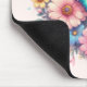Mousepad with a beautiful illustration. A heart-shaped bouquet of flowers in pastel blue, green, purple and yellow. With a lovely blue butterfly hovering in front.
