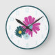Daisy Garden Botanical Wildflower Dark Blue Round Clock