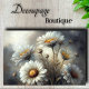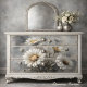 Decoupage_Boutique presents a serene daisy design that transforms everyday furniture into cherished art pieces. This enchanting composition features luminous white daisies with golden centers against a dreamy, misty backdrop. The subtle play of light and shadow creates a timeless atmosphere of pastoral elegance.