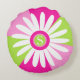 A unique daisy style flower graphic pillow in fresh pink, bright green and white. Personalize with your own initial, currently reads S. Designed by Sarah Trett. Would look great in a teen or girls bedroom to tie pink and green colours together.