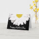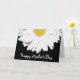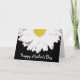 A card featuring an illustration of a half daisy peeking out from top over a background of black. White text at bottom says "Happy Mother's Day." Blank inside.