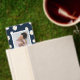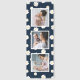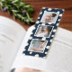 This charming bookmark allows you to display three cherished photographs arranged vertically, each framed with a thin white border. The images are set against a delightful pattern of white daisies with yellow centers scattered across a deep navy-blue background. This customizable bookmark beautifully merges personal memories with a touch of floral sweetness, creating a lovely keepsake for any book lover.