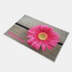 This custom doormat is designed with an image of a pink Gerbera Daisy between neutral toned, naturally colored wooden boards. "Welcome" is added in large, easy-to-read lettering. The mat measures 24" x 36", and has a smooth felt front & nonslip latex back. It also has a reinforced edge to resist fraying, is both fade & mildew resistant, and cleans easily with a spray of water. Ideal for covered entryways such as porches, apartments, offices, condos, etc. Feel free to contact me through Zazzle if you have questions about this mat or would like help transferring this design to a different item. I'm happy to help to ensure the image and lettering fit correctly.