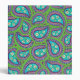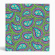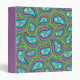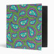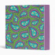 A binder with a green and purple paisley design. The paisley has daisies in the middle against a light blue background.