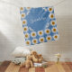 This Pretty Daisy Pattern Baby Blanket features White Daisies on Blue. Customize with your own name!