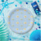 White and light blue Daisy Pattern on soft light blue background. Daisy flower illustration.