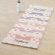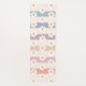 This floral yoga mat is decorated with hand-drawn white daisies on a pastel-striped background.
