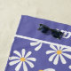 Daisy Periwinkle Flower beach towel features a daisy pattern over a periwinkle background. Personalize it with your name in a stylish white script font.