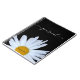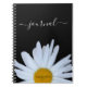 Photograph of a singular daisy on black background with 'journal' subject matter customizable. Classic black white and yellow with white script font. Need help customizing or transferring to another product send me an email. designsbykatz@gmail.com