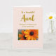 This greeting card opens on a serene pale peach background with a faint watermark-like pattern of floral silhouettes that adds gentle texture. Near the top, a warm golden calligraphic line of text sits centered, like a soft note meant for someone close ❤️. Beneath it, a neatly framed rectangular photo panel draws the eye and feels like a little window into a shared moment. Inside the frame are two daisy-like flowers in sunlit orange-yellow, their deep brown centers giving them a grounded, intimate look. The front bloom is crisp and forward, while the second sits slightly behind, softened by a green, blurred backdrop that suggests quiet closeness. The golden text stands out against the peach field, and the frame below keeps the layout tidy and easy to read 🌼. In the photo, the petals show fine folds and highlights, with the foreground flower angled slightly toward the viewer and the second bloom fading gently into the background.