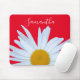 Photograph of a singular daisy on a cherry red background. Cherry red white and yellow with elegant white script font. Add your name or your own text or leave blank. Totally up to you. Need help customizing or transferring to another product send me an email. designsbykatz@gmail.com