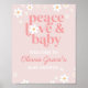 Daisy Pink Retro Peace Love Baby Shower Welcome Poster