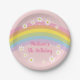These cute birthday paper plates feature hand drawn daisies and a rainbow in pastel colors.
